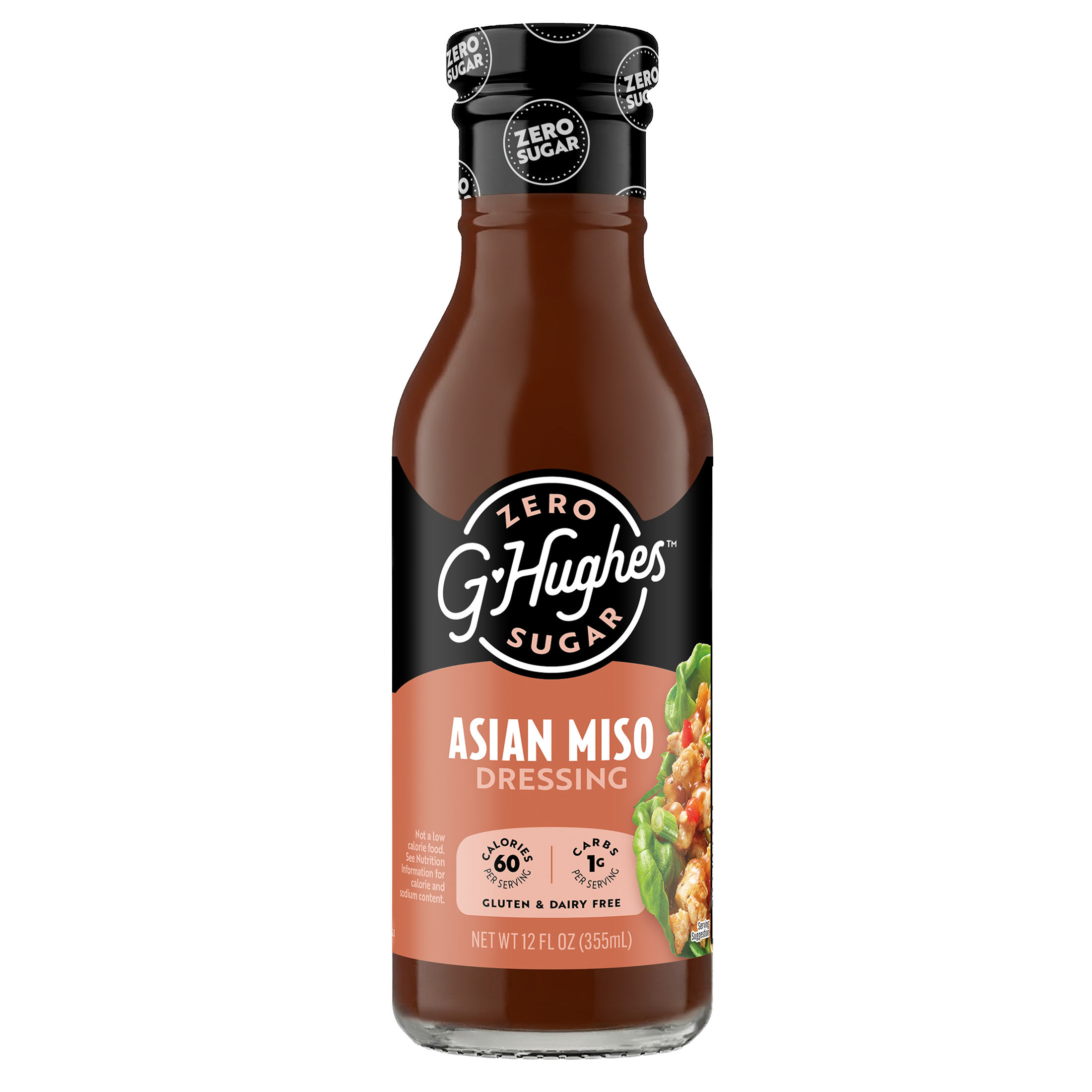 G Hughes Zero Sugar Asian Miso Dressing is a savory-sweet blend featuring rich, toasted sesame and miso flavor.