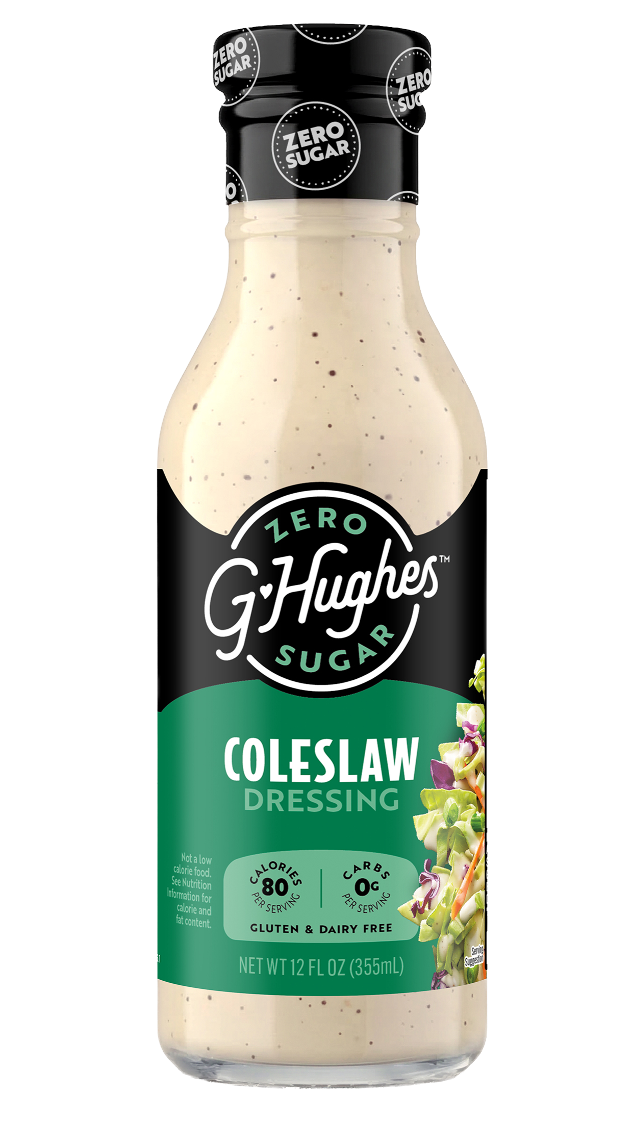 1. Mix shredded cabbage and carrots with 3/8 cup G Hughes Zero Sugar Coleslaw dressing
