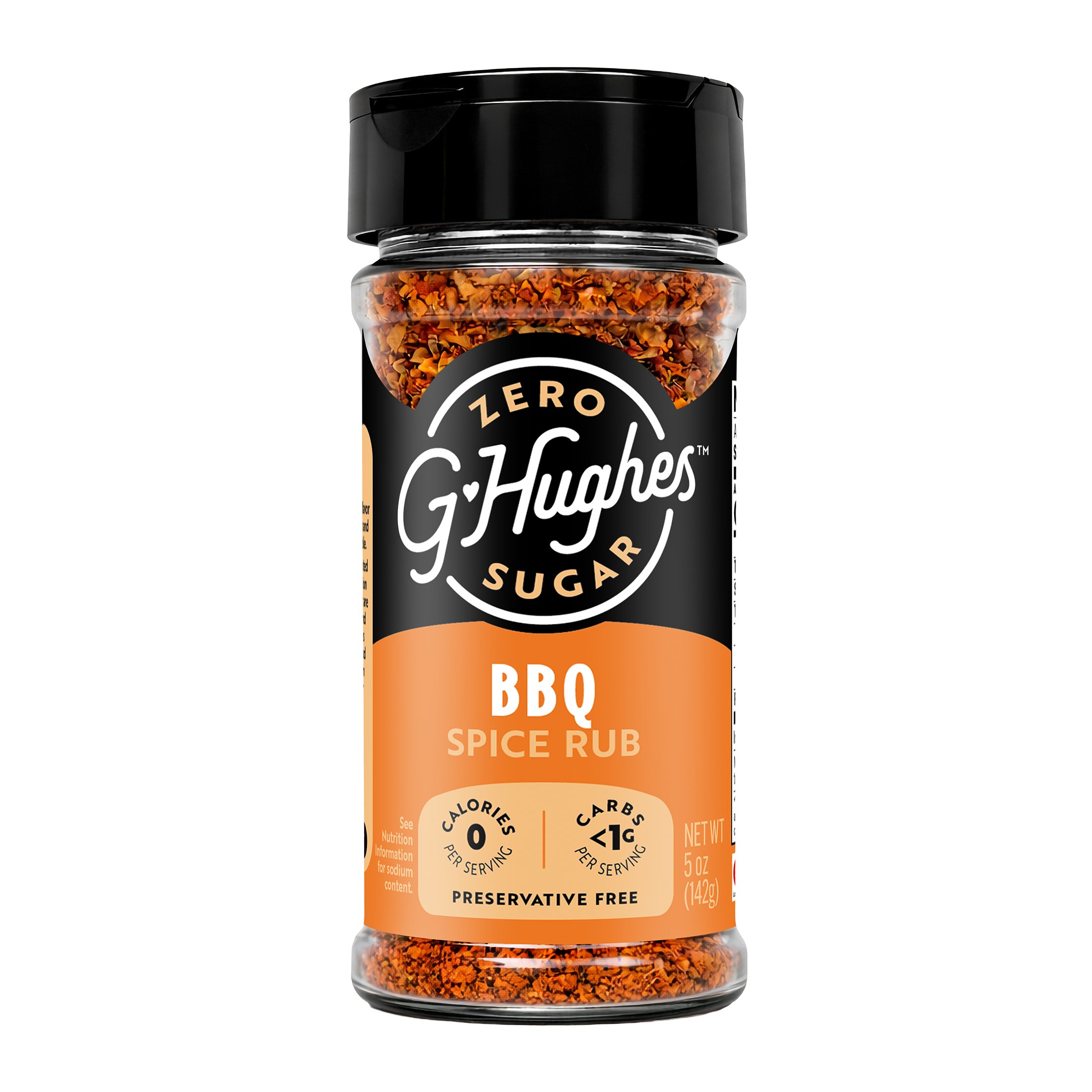 G Hughes Zero Sugar BBQ Spice Rub is a bold seasoning crafted from a savory base of salt, chili powder, minced onion, and minced garlic.