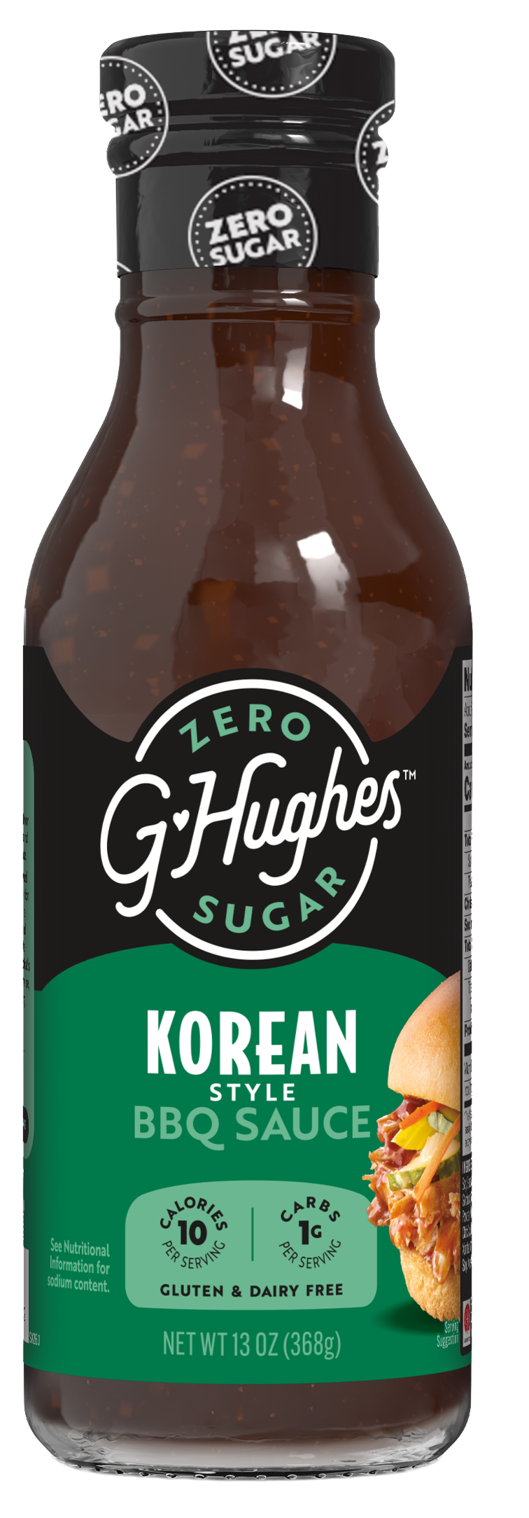 New! G Hughes Zero Sugar Korean BBQ Sauce is a sweet & savory sauce with gochujang spice and tamari flavors. Perfect for grilling, dipping or sauteing delicious zero sugar meals and snacks.