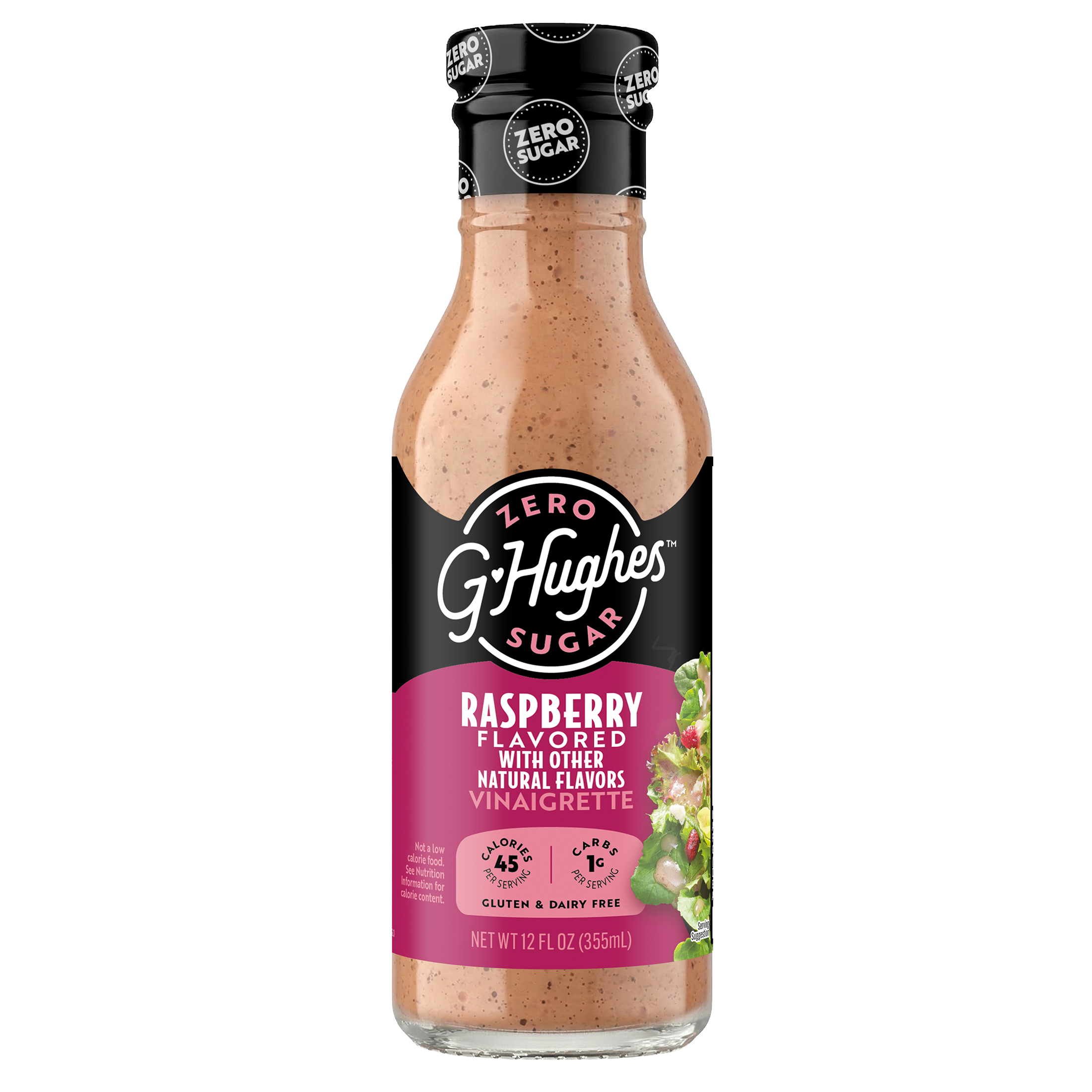 G Hughes Zero Sugar Raspberry Vinaigrette is smooth and vibrant, bursting with the sweet‑tart flavor of raspberries. Enjoy it on a crisp kale salad or even toss on your favorite fruit salad.