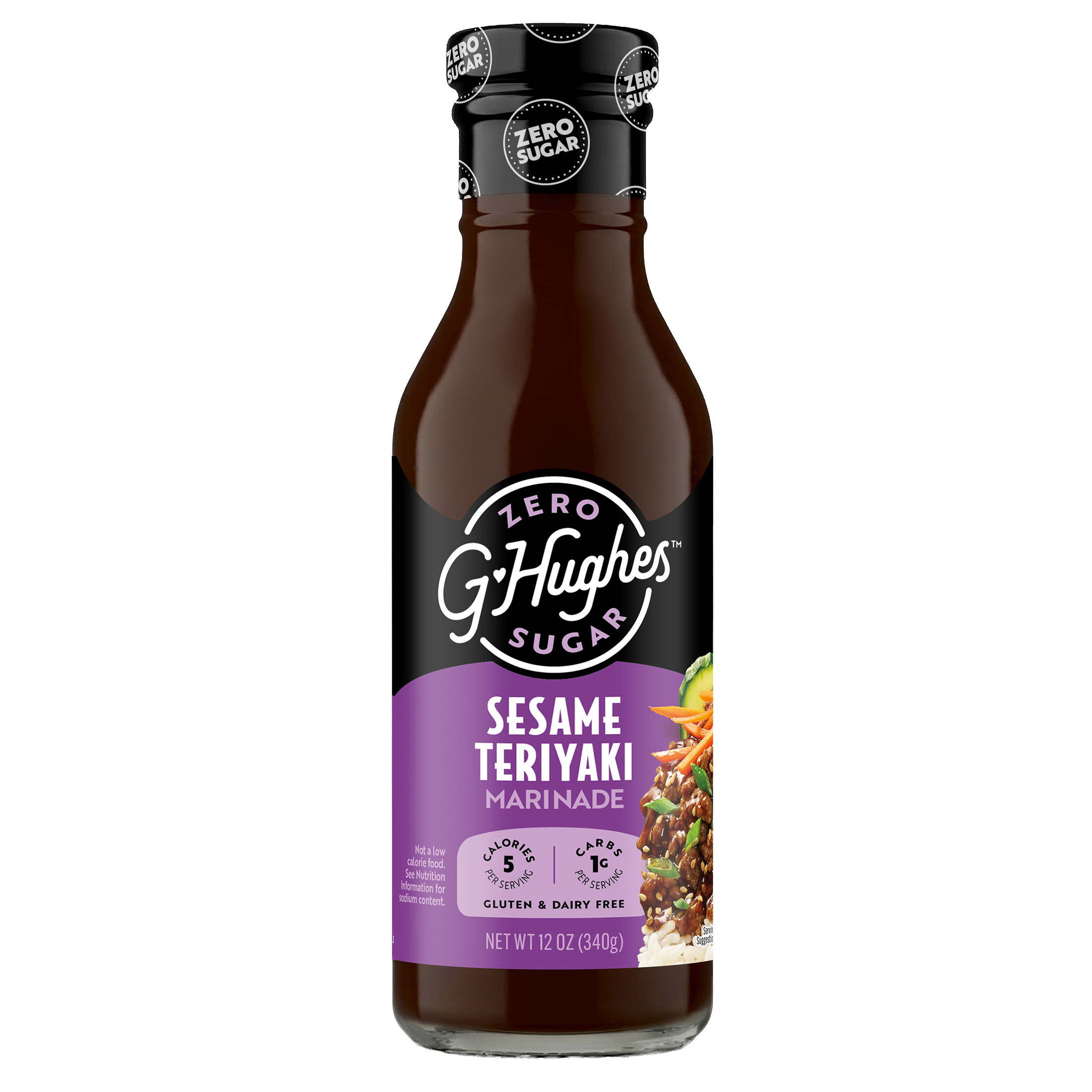 G Hughes Zero Sugar Sesame Teriyaki Marinade has mild, sweet, and nutty flavor. Marinate with your favorite grilled protein or saute veggies for an easy side dish.