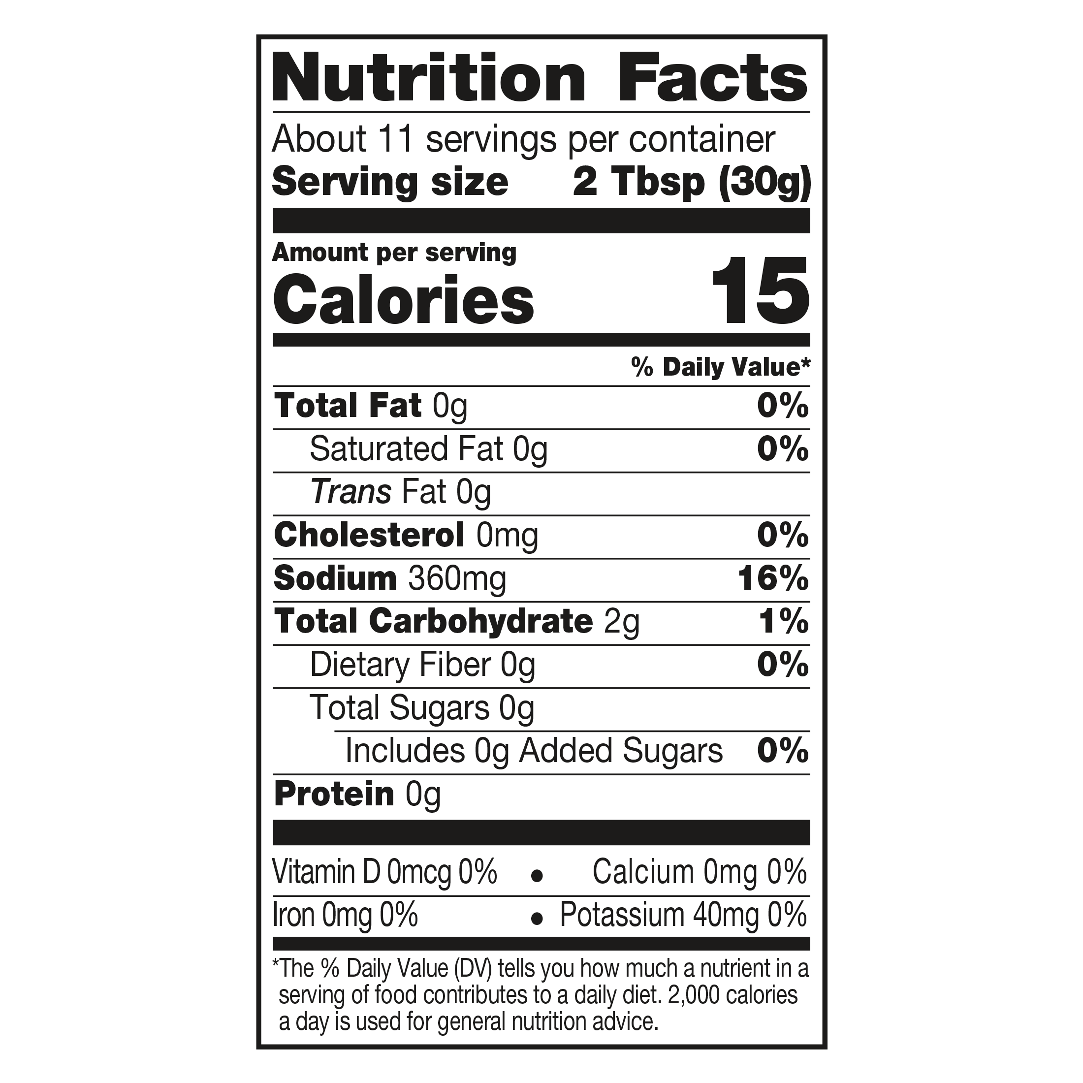 INGREDIENTS: Tomato Puree (Water, Tomato Paste), Horseradish (Horseradish Root, Vinegar And Salt), Distilled Vinegar, Modified Corn Starch, Salt, Apple Cider Vinegar, Canola And/Or Soybean Oil, Tamari Soy Sauce (Water, Soybeans, Salt, Alcohol), Lime Juice Concentrate*, Garlic Powder, Xanthan Gum, Paprika Extract (Color), Seasoning Blend (Salt, Onion Powder, Natural Flavor), Spice, Caramel Color, Mustard Flour, Sucralose. Contains: Soy. *Adds A Trivial Amount Of Sugar