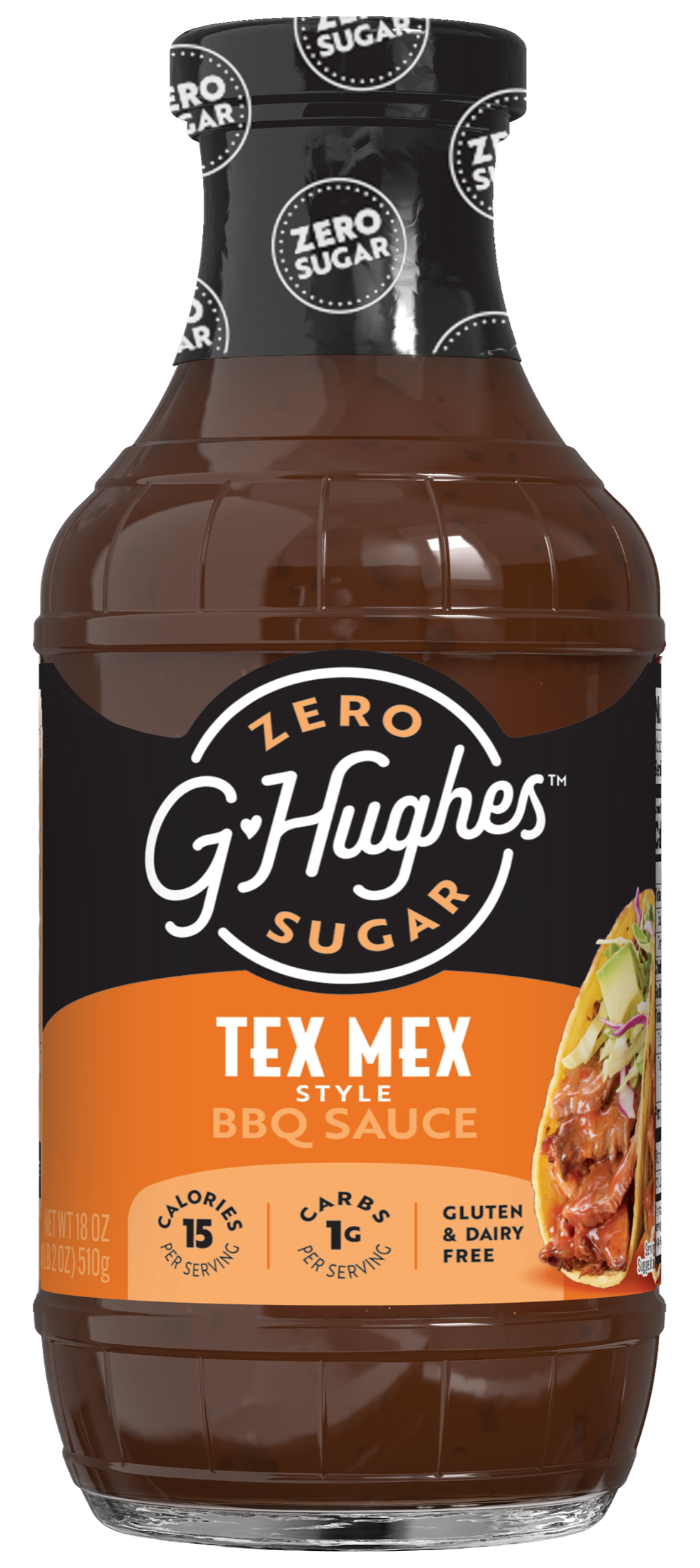 New! G Hughes Zero Sugar Tex Mex BBQ Sauce is crafted with with mesquite smoke, green bell pepper and spices. Enjoy tacos, fajitas and more without the sugar.